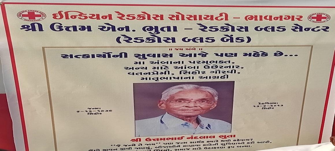 સિહોરના ભામાશા તરીકે ઓળખાતા શ્રી ઉત્તમભાઈ ભુતાની જન્મ તિથિ નિમિતે રેડક્રોસ ભાવનગર દ્વારા શ્રી.ઉત્તમ.એન.ભુતા-રેડક્રોસ બ્લડ સેન્ટર બ્લડ બેન્ક દ્વારા આજે બે રક્તદાન શિબિર યોજાઈ હતી સિહોર જેનબ્રકટ ફાર્માસીસ ના શ્રી.ઉત્તમ એન.ભુતા ની જન્મ તિથિ નિમિતે ઇન્ડિયન રેડક્રોસ સોસાયટી ભાવનગર દ્વારા શ્રી.ઉત્તમ.એન.ભુતા-રેડક્રોસ બ્લડ સેન્ટર ( બ્લડ બેન્ક) દ્વારા બે રક્તદાન શિબિર યોજાયો. શ્રી ઉત્તમ એન. ભુતા પરિવાર ના સહકાર થી ભાવનગર રેડક્રોસ ની બ્લડ બેન્ક ને શ્રી.ઉત્તમ.એન.ભુતા-રેડક્રો સ બ્લડ સેન્ટર (બ્લડ બેન્ક) ની સેવાઓ ભાવનગર જિલ્લા ના લોકો ને મળી રહી છે અને બ્લડ બેન્ક ની સેવાઓ શ્રી.ઉત્તમભાઈ ભુતા ની સ્મૃતિ માં ચાલી રહી છે તેમની જન્મ તિથિ નિમિતે તા.6/12/22 ના રોજ સવારે 10 થી સાંજે 8 કલાક દરમ્યાન ઉત્તમ.એન.