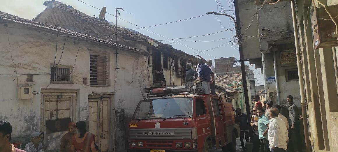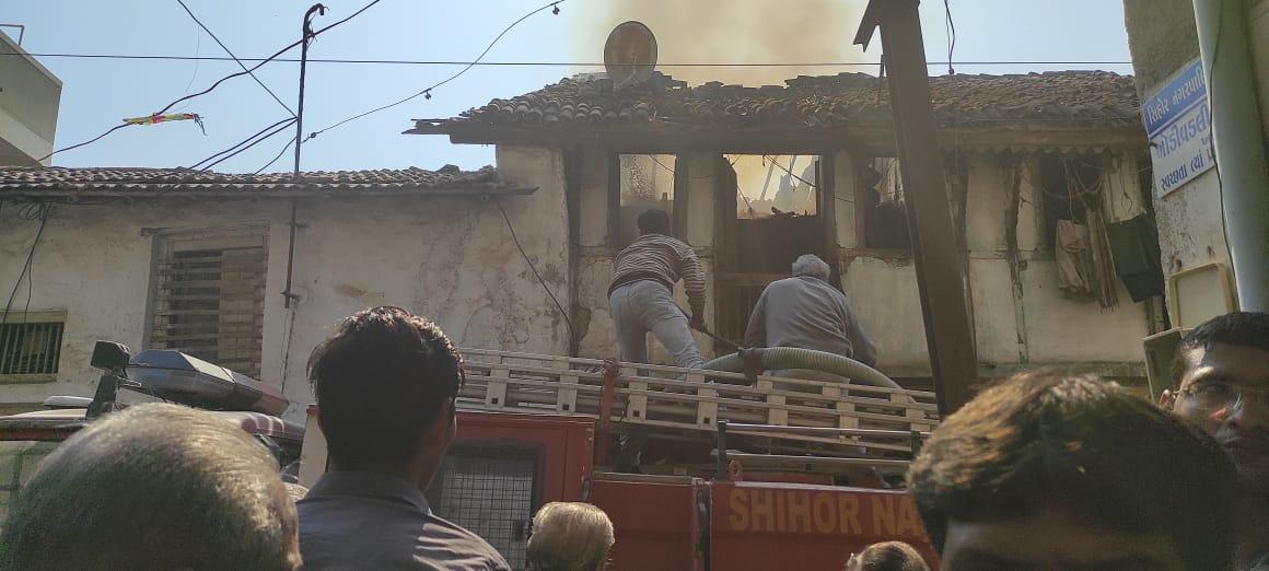 સિહોરના કંસારા બજાર વિસ્તારમાં શ્રમિક પરિવારના રહેણાંકી મકાનમાં આગની ઘટના ; અડધા લાખથી વધુનું નુકશાન