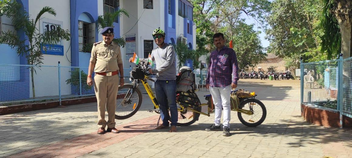 સાયકલ ચલાવો, તંદુરસ્ત બનો, પ્રદૂષણ હટાવોના સૂત્ર સાથે વાપીના યુવકનું સમગ્ર ભારત ભ્રમણ ; સિહોરમાં પ્રવેશ કર્યો