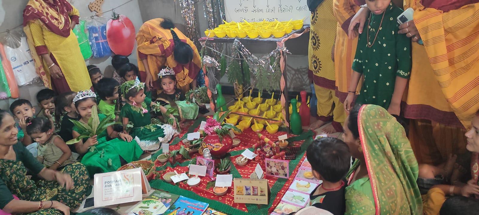 બાળકોને લીલું પોષણ આપવા માર્ગદર્શન અપાયું – લીલા વસ્ત્રોમાં બાળકો પણ હરિયાળા ખીલી ઉઠ્યા હતા
