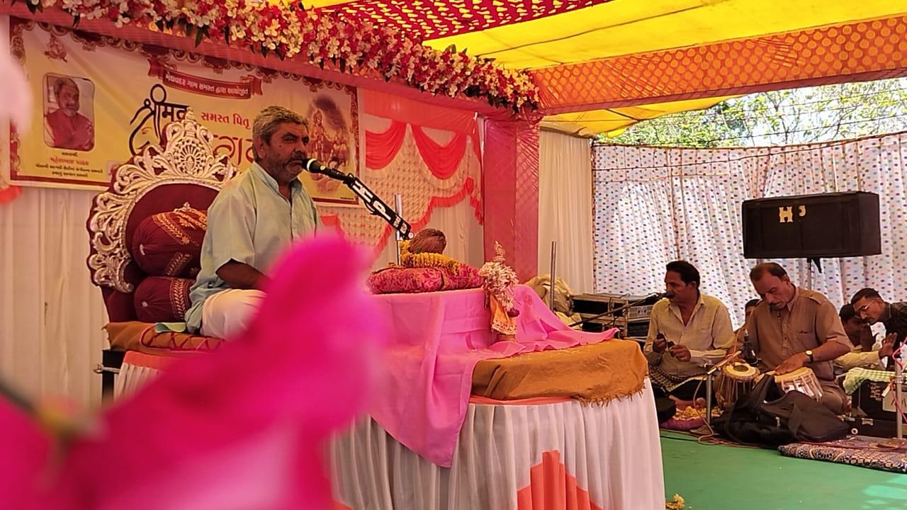કથાનું રસપાન કરાવતા મહેશભાઈ પાઠક, શનિવાર એ પોથી યાત્રા નીકળી, મેઘવદર સમસ્ત ગામ બન્યું ગોકુળિયું