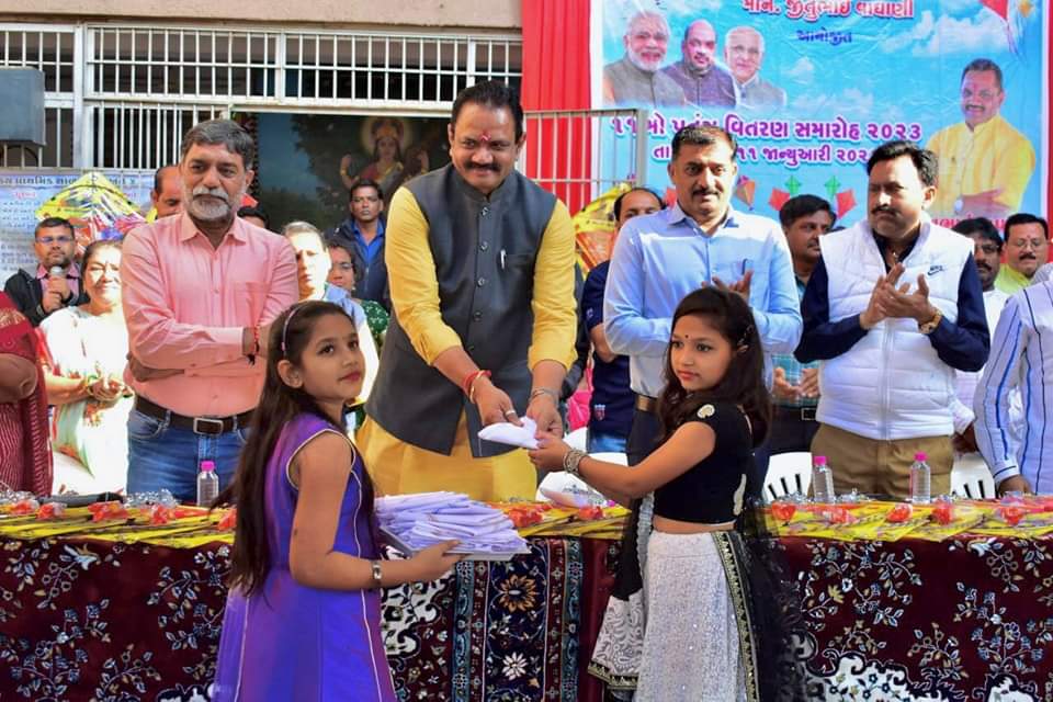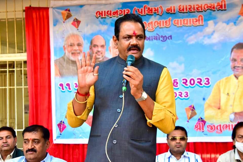 ભાવનગરની શાળાઓમાં 20 હજાર બાળકોને ધારાસભ્ય જીતુભાઈ વાઘાણીએ પતંગ અને બિસ્કીટનું વિતરણ કર્યું