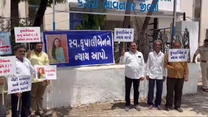 આત્મહત્યા નહી પણ યુવતીની હત્યાનો આક્ષેપ, ન્યાયની માંગ સાથે ભાવનગર કલેક્ટર કચેરી ખાતે રાજુ સોલંકી અને કૃપાલીના પરિવારજનો ધરણા કરે એ પહેલા જ પોલીસે અટકાયત કરી લીધી