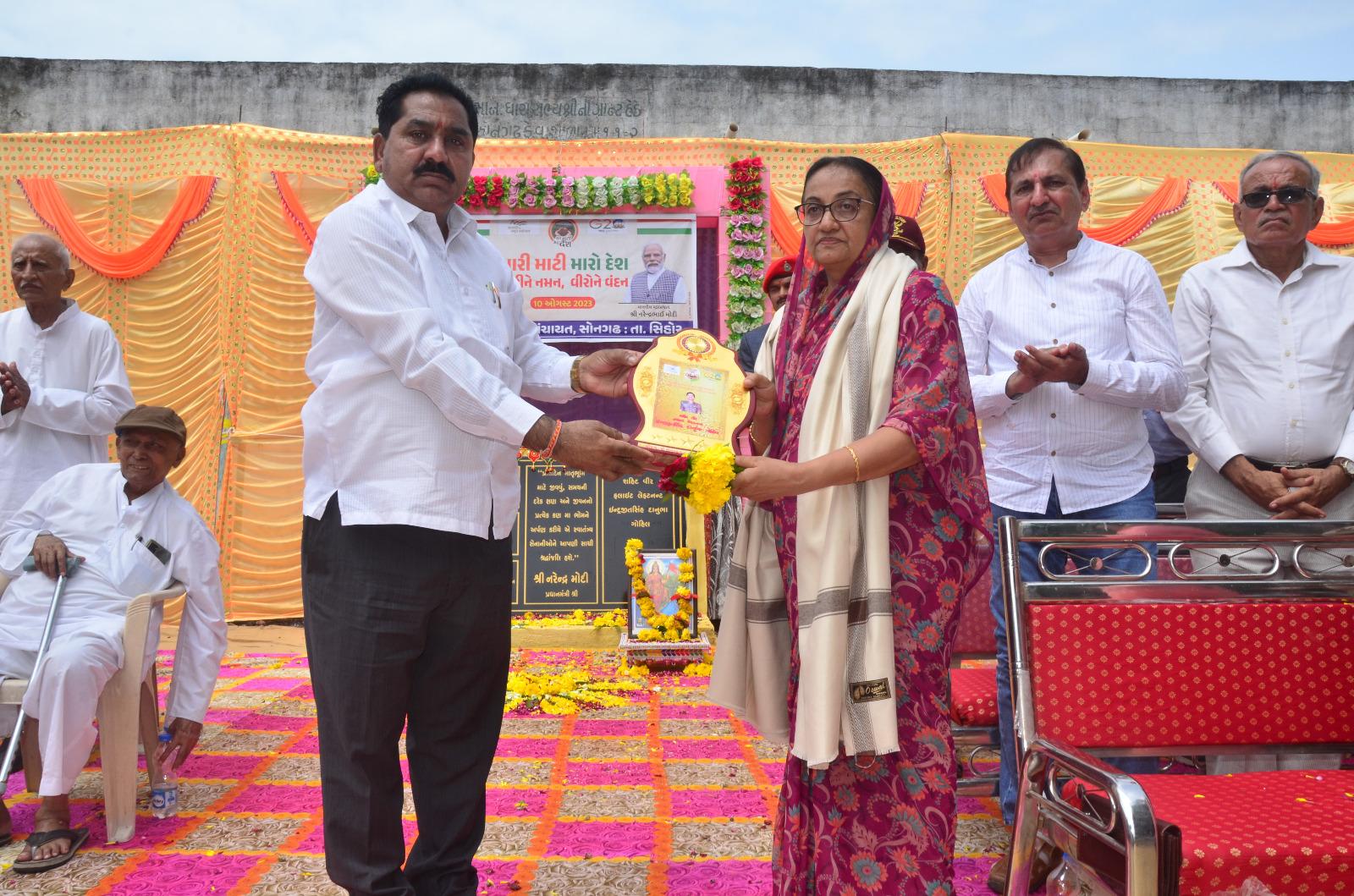 આઝાદી કા અમૃત મહોત્સવ” અંતર્ગત આગામી તા. ૯ થી ૩૧ ઓગસ્ટ દરમિયાન સમગ્ર દેશમાં ‘મારી માટી, મારો દેશ’ અભિયાનનો પ્રારંભ કરવામાં આવ્યો છે. જે અંતર્ગત જમ્મુ કાશ્મીરમાં વર્ષ ૧૯૮૭ મા ઓપરેશન દરમ્યાન હેલિકોપ્ટર ક્રેશમાં શહીદ થયેલા ફ્લાઇટ લેફટન્ટ ઇંદ્રજીતસિંહ ગોહિલના પરિવારજનોનું આજે સિહોર તાલુકાના સોનગઢ ખાતે સન્માન કરવામાં આવ્યું હતું.
