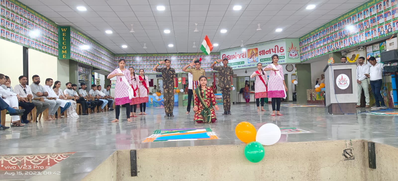 શાળાની પરંપરા મુજબ વર્ષ ૨૦ર૩ દરમિયાન ધોરણ ૧૦માં શાળામાં પ્રથમ આવનાર વિદ્યાર્થીની કુ.ઠક્કર પ્રાચી નિલેશભાઇના વરદ હસ્તે ધ્વજવંદન કરવામાં આવ્યું હતું. તેમજ વિદ્યાર્થીઓ, શિક્ષકો દ્વારા પરેડ,માસ પીટી, દેશભક્તિગીત, નાટક, યોગા, નૃત્ય જેવી સાંસ્કૃતિક કૃતિ રજૂ કરવામાં આવી હતી. ટ્રસ્ટીશ્રી, સંચાલકશ્રી, આચાર્યશ્રી, શિક્ષકગણ તેમજ વિદ્યાર્થીઓ દ્વારા પ્રસંગને અનુરૂપ વક્તવ્યો અપાયા હતા. તથા છેલ્લે ઈનામ વિતરણ, મોં મીઠું કરી કાર્યક્રમ પૂર્ણ કરવામાં આવ્યો હતો. ત્યારબાદ યુવા યુગ ૫રિવર્તન સંગઠન દ્વારા શાળા કેમ્પસમાં વૃક્ષારો૫ણ તથા સીડ બોલનું વિતરણ કરવામાં આવ્યું હતું.